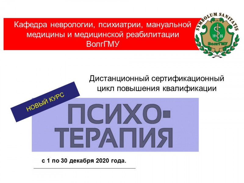 Кафедра неврологии, психиатрии, мануальной медицины и медицинской реабилитации ВолгГМУ открыла новое направление в обучении «Психотерапия».