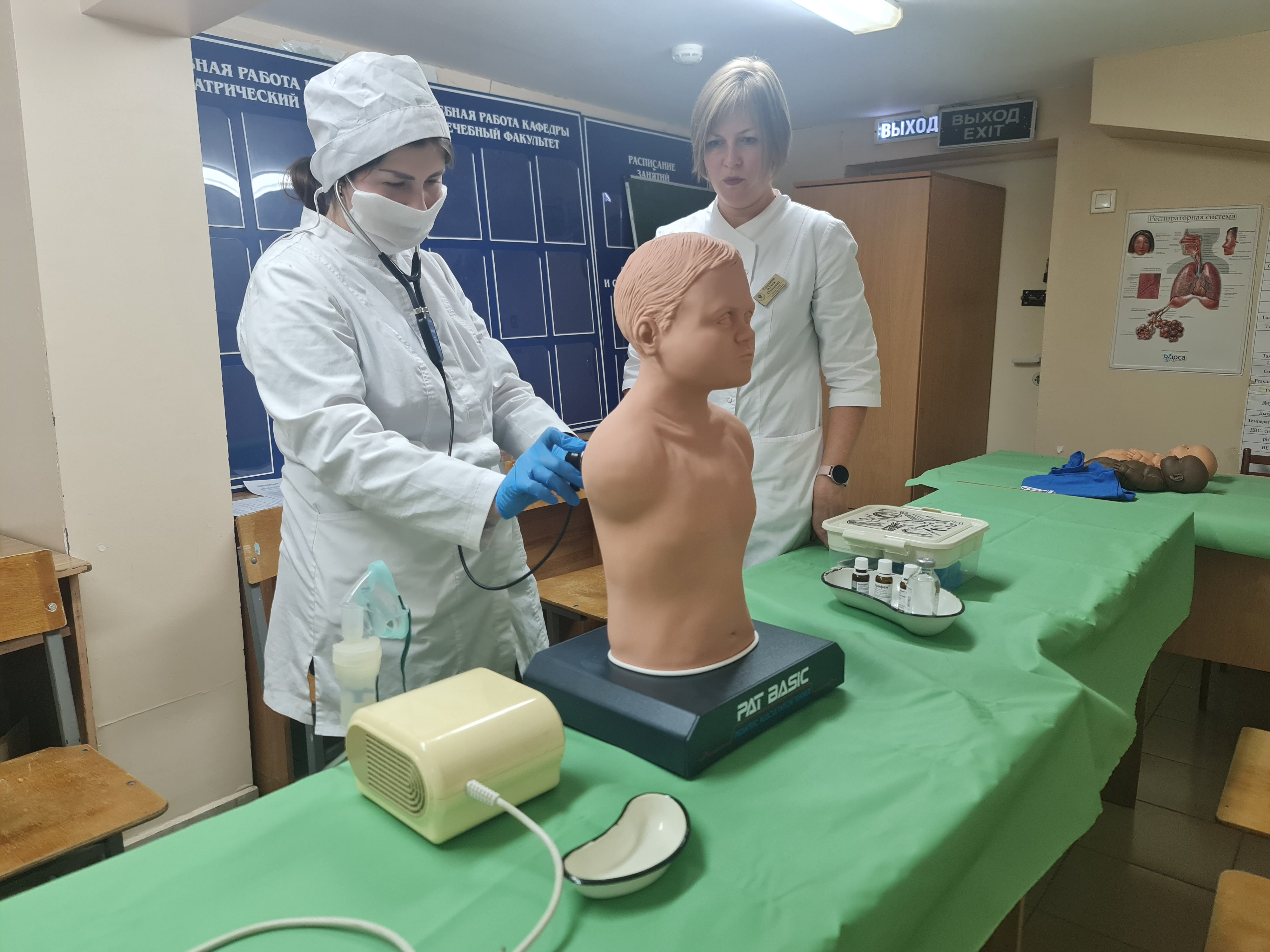 12 октября 2023 года на кафедре детских инфекционных болезней у обучающихся 5 и 6 группы педиатрического факультета 6 курса отрабатывались практические навыки оказания помощи при дыхательной недостаточности у ребенка. Для реализации симуляционного сценария была подготовлена рабочая станция, оснащенная манекенами, небулайзером, пульксоксиметром, расходными материалами и лечебными препаратами (муляжами). Была отработана тактика действия участкового врача педиатра при выявлении случая обструктивного бронхита с дыхательной недостаточностью.